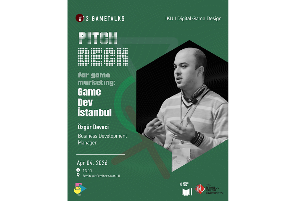 Organized by the Department of Digital Game Design, the thirteenth meeting of the GameTalks event series was held on April 4 at 13:00 in the Ground Floor Seminar Hall II, featuring Özgür Deveci, Business Development Manager at GameDev İstanbul, as the guest speaker.